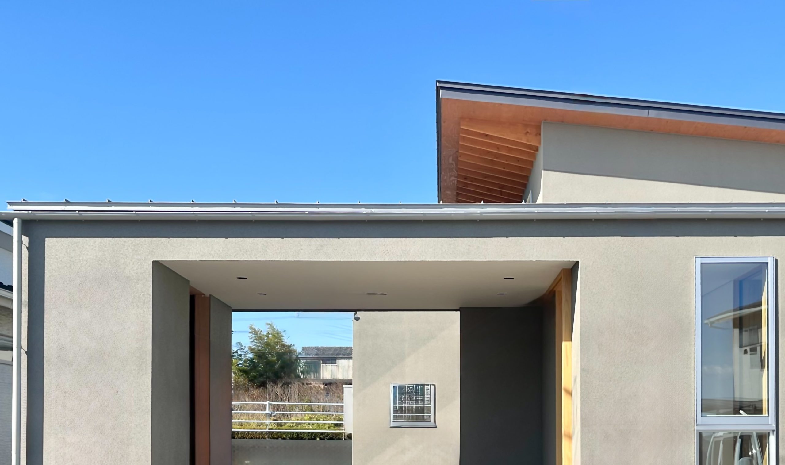 大きな幹線道路沿いに建つ平屋の住まいです。